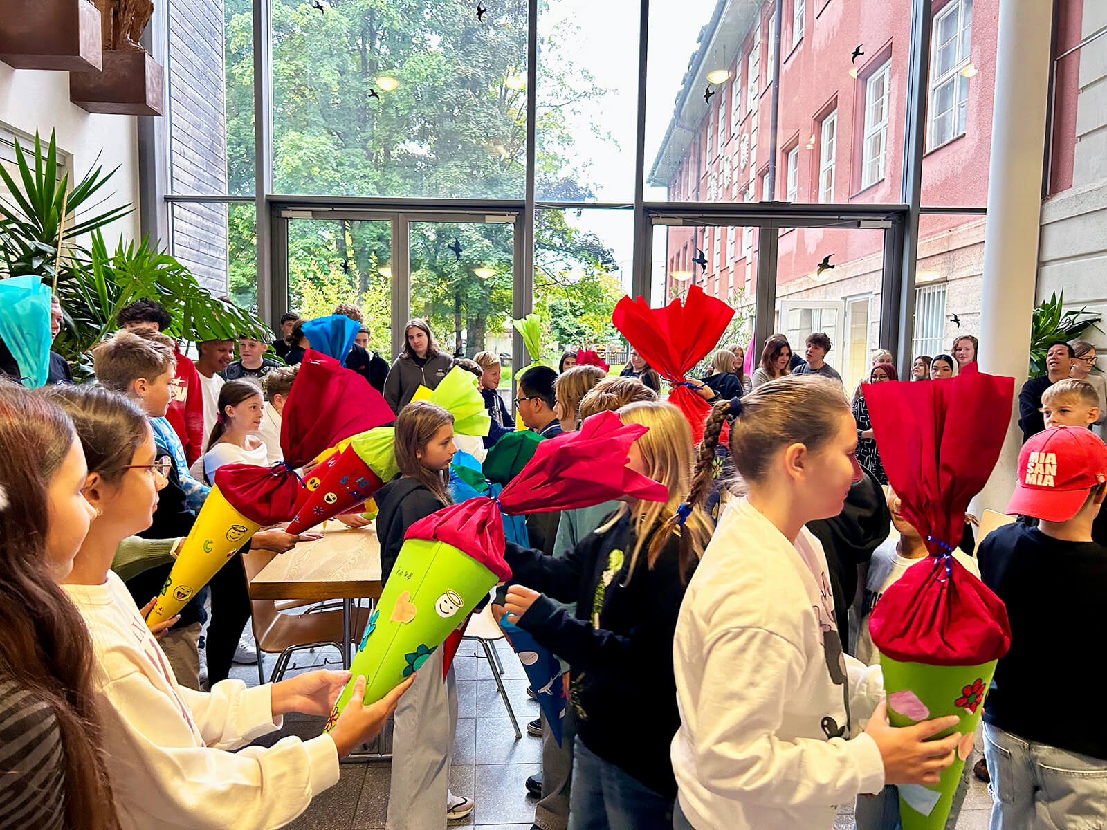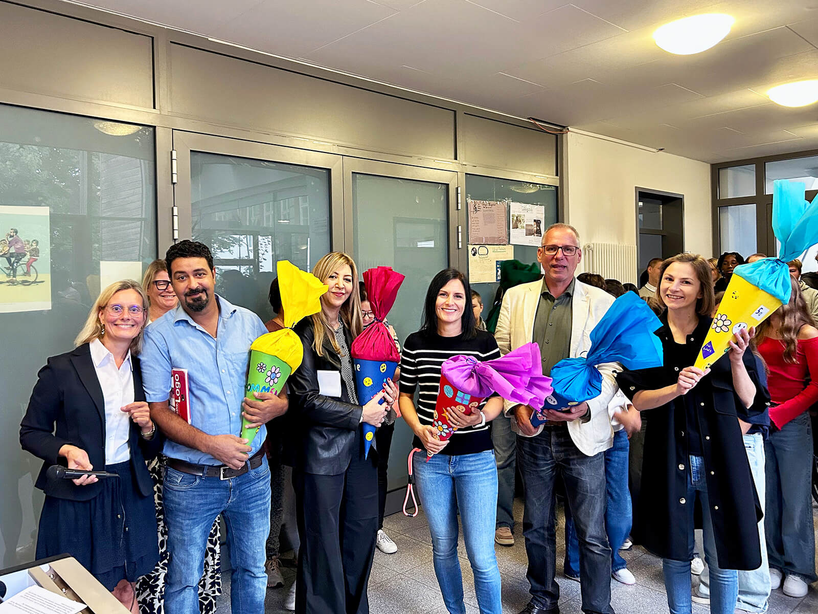 Doch nicht nur die Jüngsten durften sich über eine Schultüte freuen: Sogar die neuen Lehrkräfte erhielten von der 6a ein solches Willkommensgeschenk – schließlich war es auch für sie der erste Tag an unserer Schule.