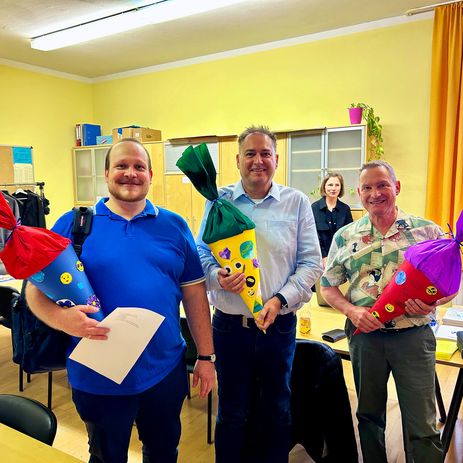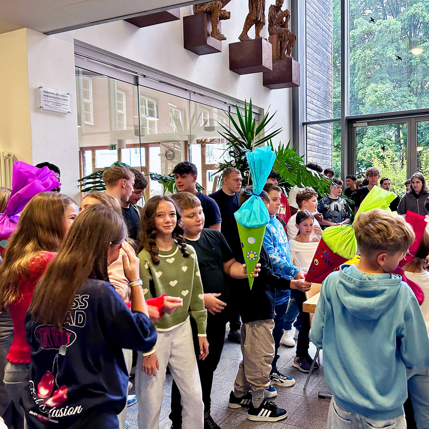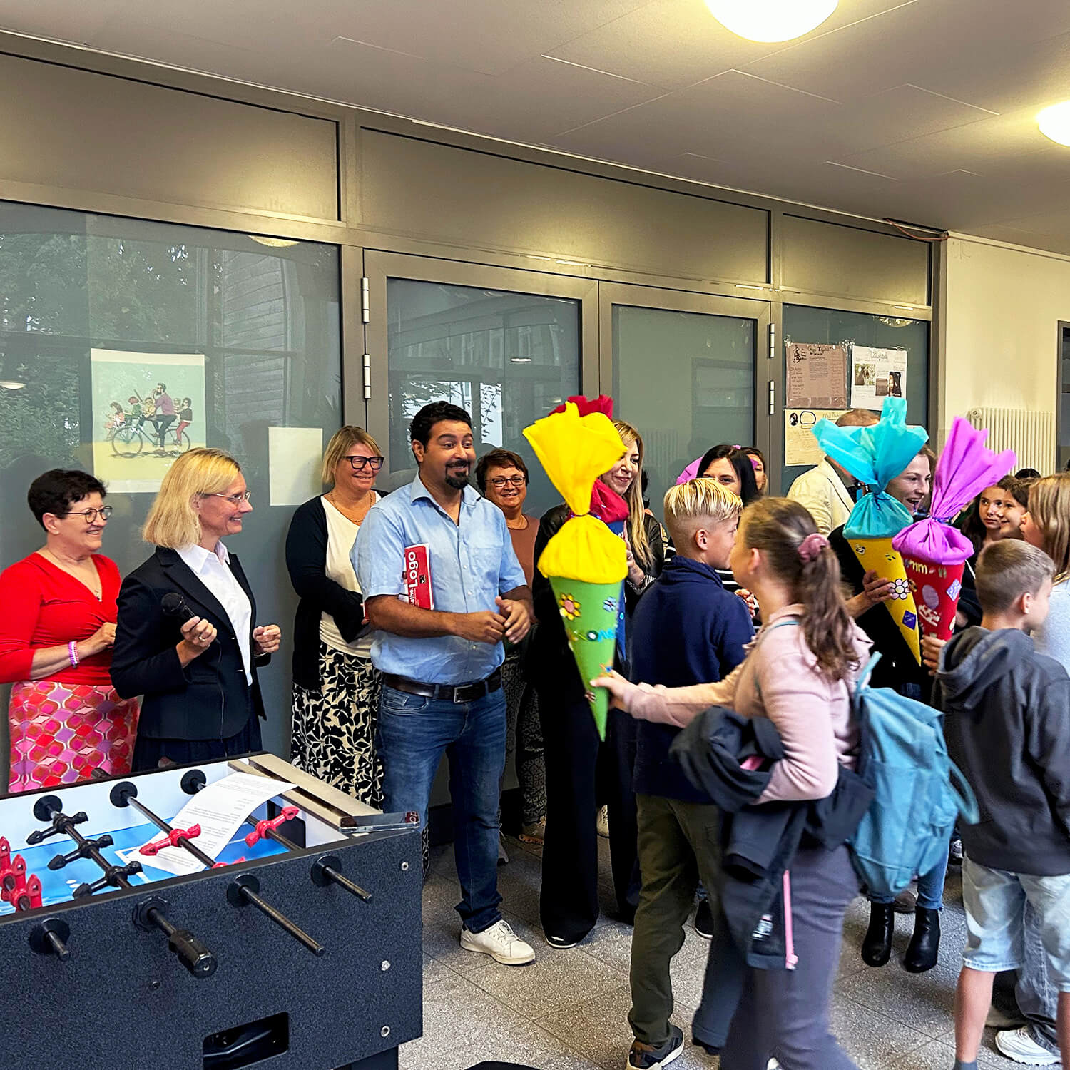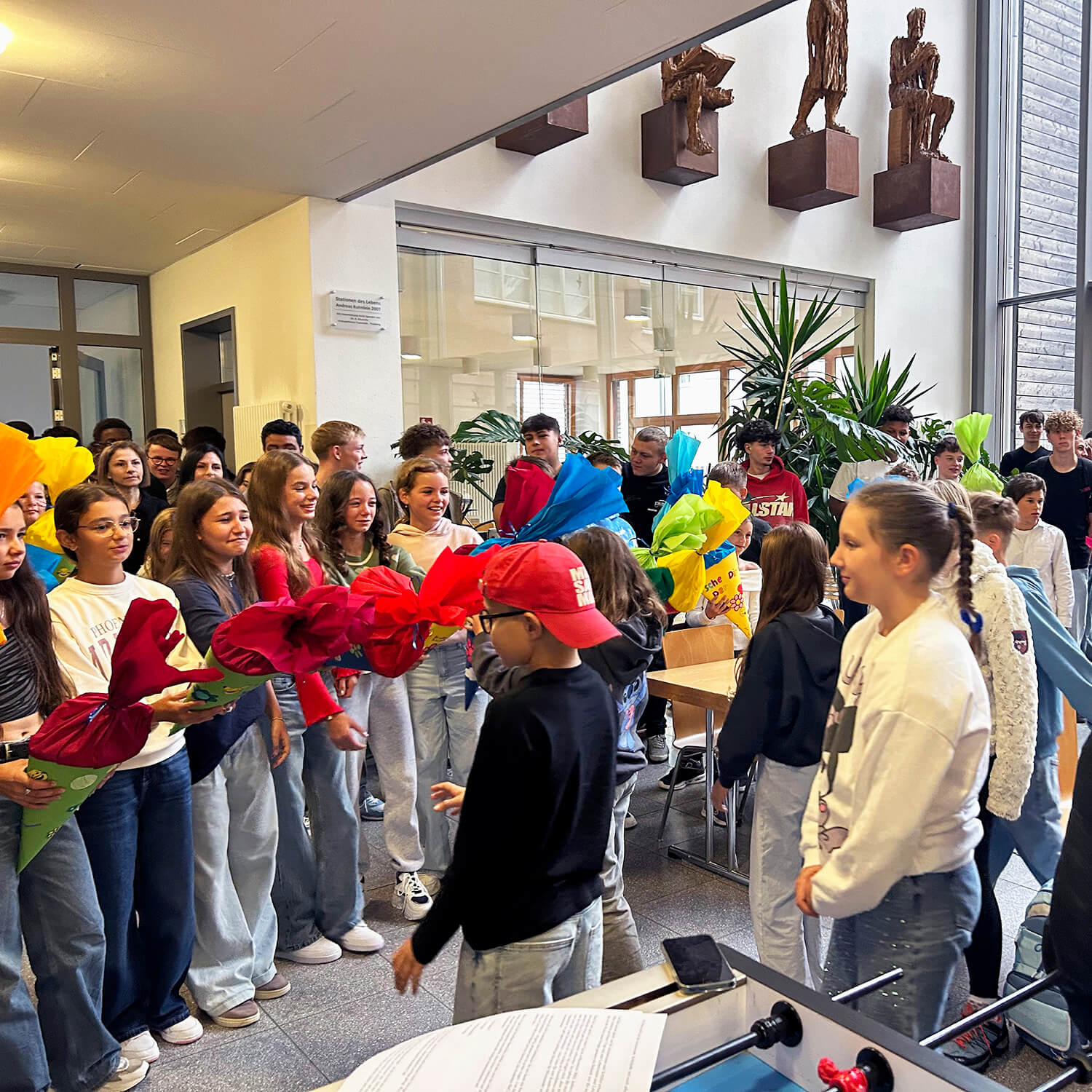 Doch nicht nur die Jüngsten durften sich über eine Schultüte freuen: Sogar die neuen Lehrkräfte erhielten von der 6a ein solches Willkommensgeschenk – schließlich war es auch für sie der erste Tag an unserer Schule.