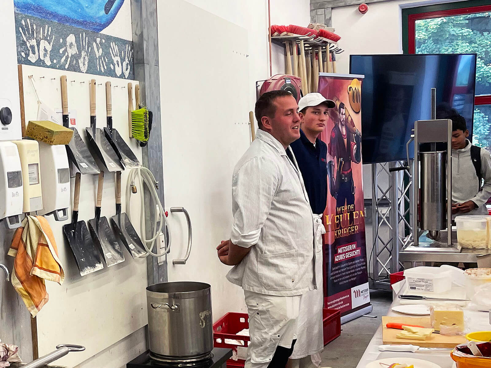 An zahlreichen Stationen konnten die Schülerinnen und Schüler selbst aktiv werden: Sie mauerten kleine Wände, feilten Metall, verzierten Holz oder formten Gebäck. Fachleute aus den Betrieben erklärten dabei geduldig, worauf es in ihren Berufen ankommt, vom Maurer über den Metzger und Schreiner bis hin zum Kaminkehrer.