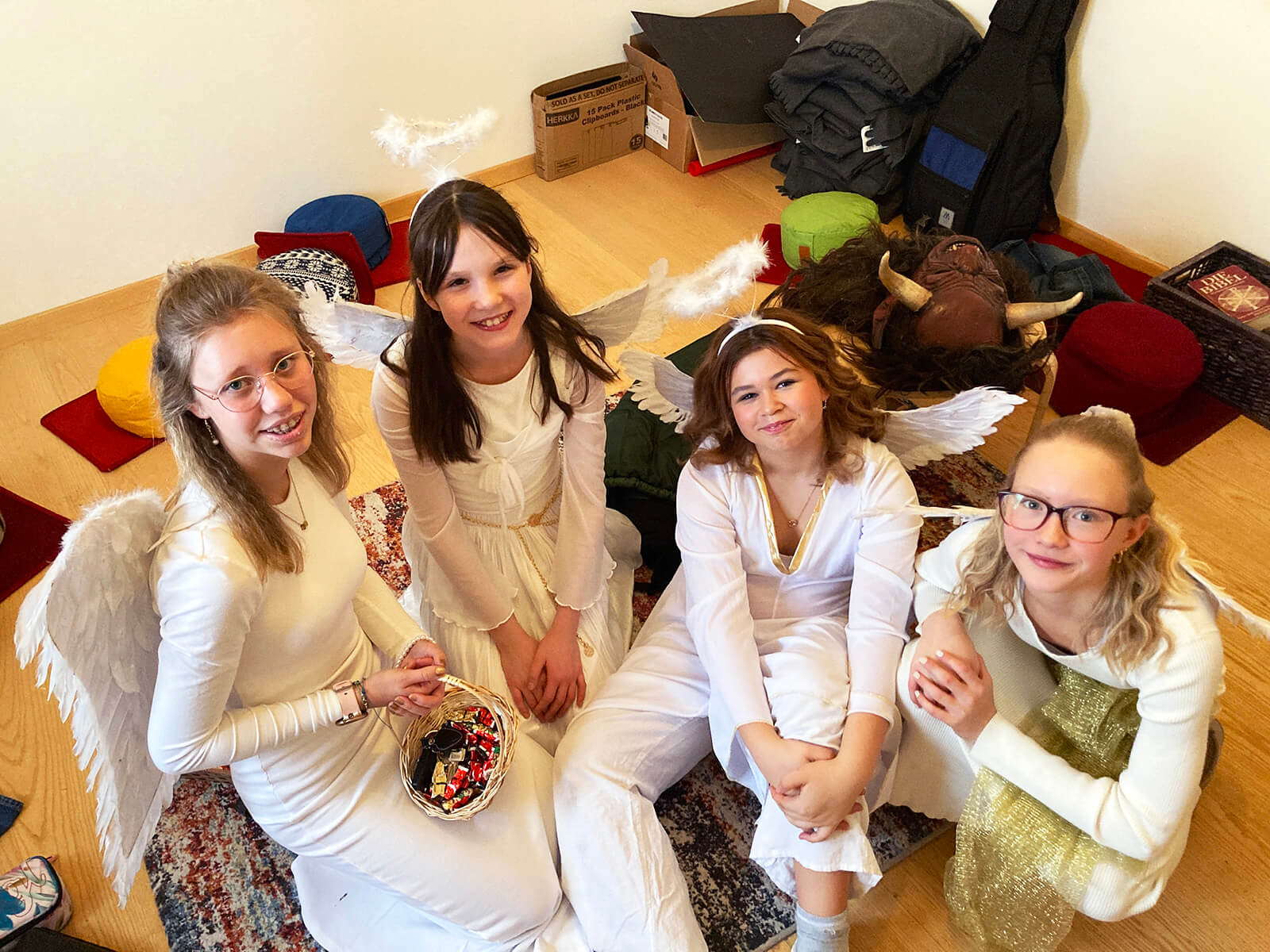 Wie jedes Jahr zog am 5. Dezember wieder ein ganz besonderer Besuch durch unsere Klassenzimmer: der Nikolaus, begleitet von vier Engeln und dem Krampus. Mit seinem roten Mantel und dem goldenen Buch brachte er nicht nur Schokolade, sondern auch viele gute Wünsche für die Adventszeit mit. Die Engel sorgten wie immer für die festliche Stimmung, während der Krampus, zum Glück deutlich freundlicher als sein Ruf, für den ein oder anderen Schreckmoment sorgte und dabei doch alle zum Lachen brachte.