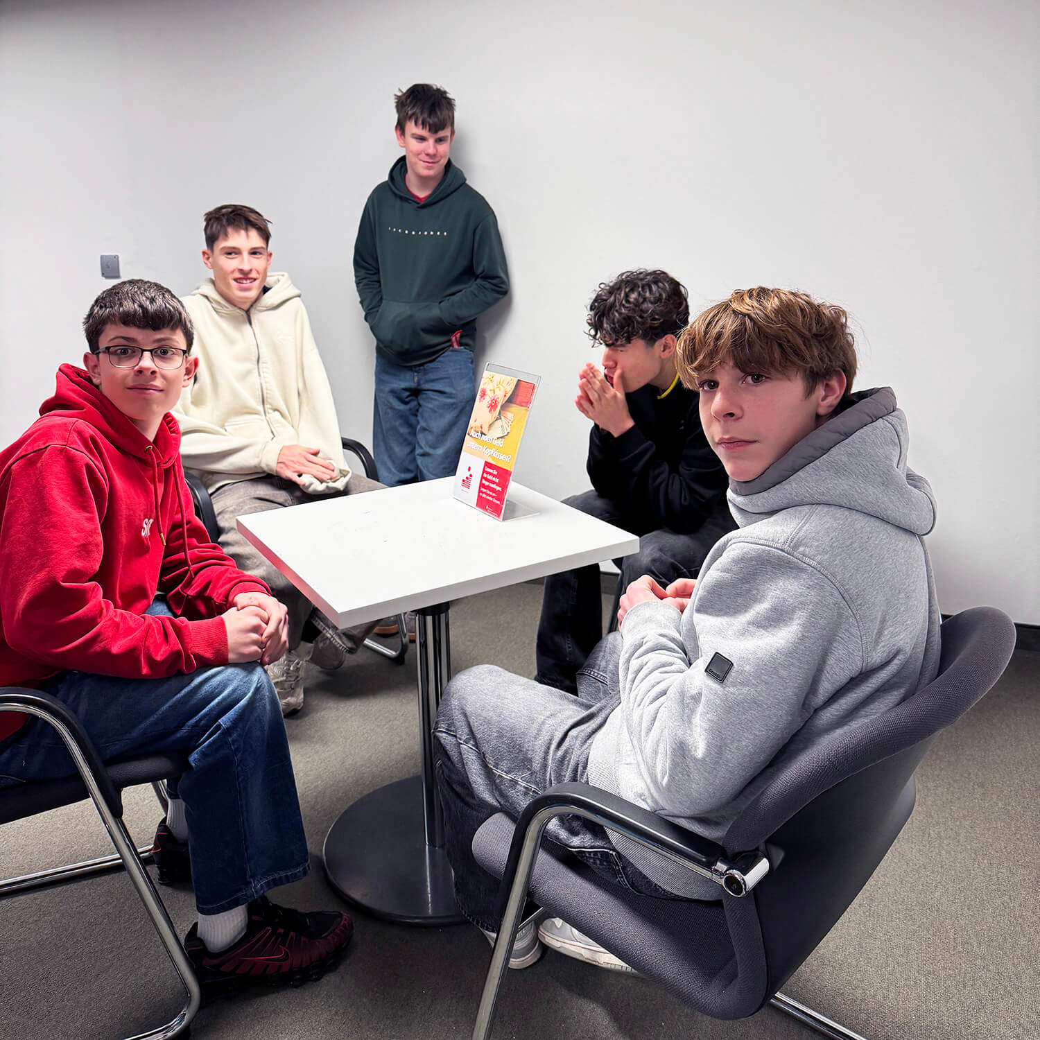 Nach dem Eintreffen im Immobiliencenter wurden die Jugendlichen herzlich empfangen und erhielten zunächst einen informativen Vortrag zum Thema Girokonto sowie Geldanlage und Sparen. Dabei wurden wichtige Grundlagen rund um den Umgang mit Geld verständlich erklärt und praxisnah vermittelt.