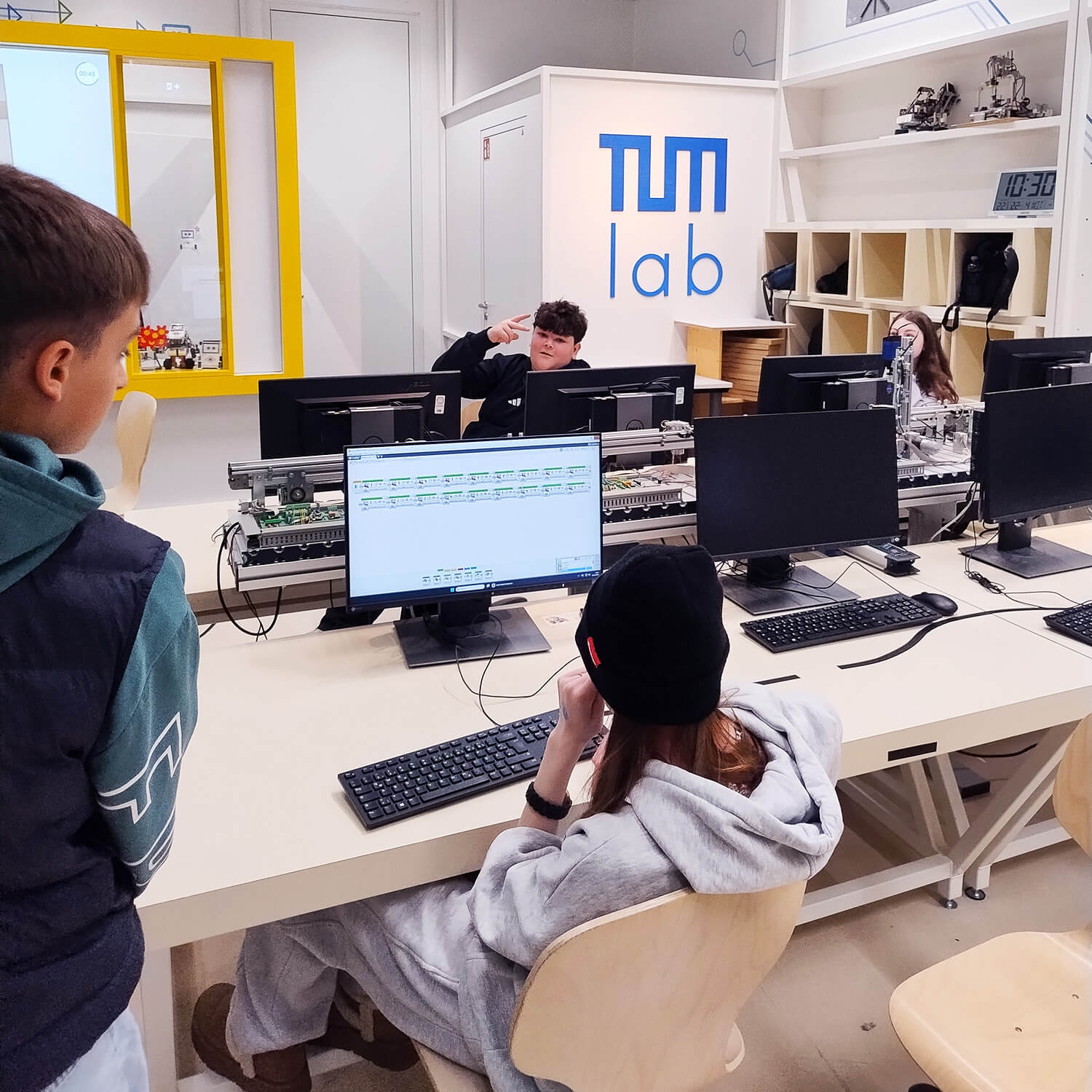 Begleitet von ihren Lehrkräften Frau Hanzekovic und Frau Breinl tauchten die Schülerinnen und Schüler in die Welt der Robotik ein. Dabei ging es nicht nur ums Zuschauen, sondern vor allem ums eigene Ausprobieren: In kleinen Teams arbeiteten die Jugendlichen mit Robotern, testeten verschiedene Einstellungen und beobachteten unmittelbar, wie sich ihre Eingaben auf das Verhalten der Maschinen auswirkten.
