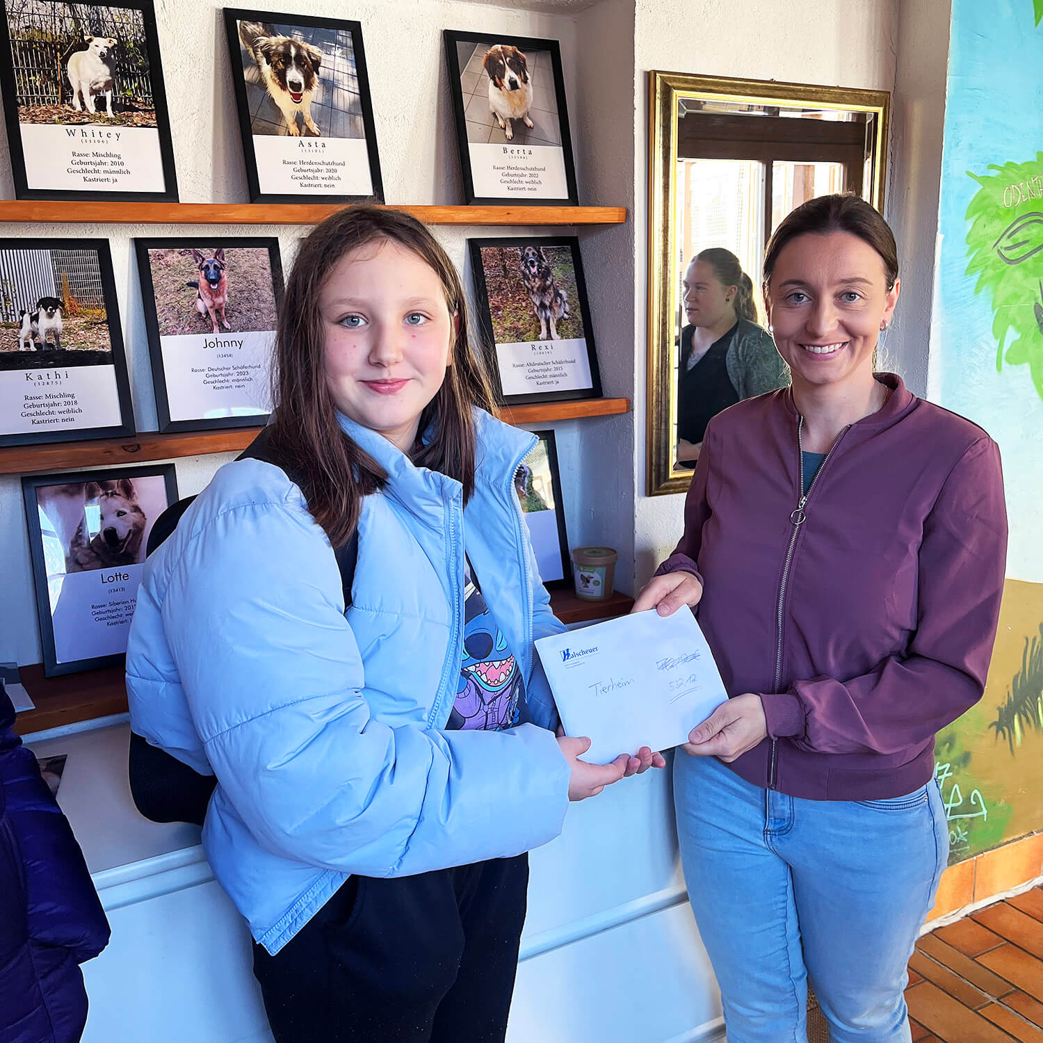 Ein ganz besonderer Ausflug führte unsere 5. Klasse kürzlich ins Tierheim Trenkmoos – und das aus einem richtig guten Grund: Mit großer Freude durften die Schülerinnen und Schüler eine Spende in Höhe von 530 Euro überreichen. Dieser stolze Betrag wurde zuvor mit viel Engagement auf dem schuleigenen Weihnachtsmarkt erwirtschaftet. Dort hatten die Kinder fleißig Weihnachtsartikel gebastelt, Plätzchen gebacken und zusammen mit Kaffee verkauft – mit vollem Erfolg!